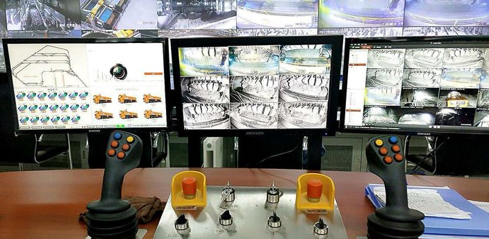 普朗銅礦集成控制中心、調度中心控室,正常生產整個溜井裝礦流程無人駕駛電機車,在總控室視頻操作完成。