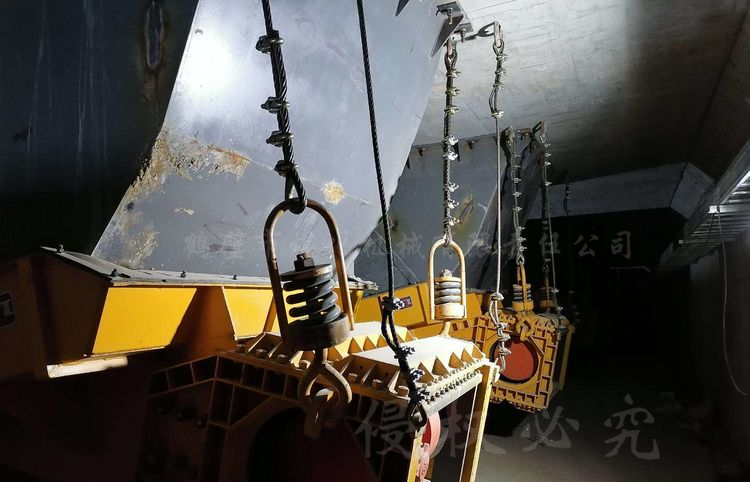 一、振動(dòng)給料機(jī)吊鉤與吊耳接觸點(diǎn)磨損斷裂。減震器吊鉤與吊耳為連接方式,振動(dòng)給料機(jī)料槽、激振部及給料料槽內(nèi)物料重量通過(guò)4個(gè)吊耳與4個(gè)彈性吊掛組件懸掛連接,吊鉤與吊耳接觸點(diǎn)為剛性連接且接觸面積小,致使吊鉤與吊耳連接處受力集中,并在工作狀態(tài)下頻繁振動(dòng)摩擦,導(dǎo)致吊鉤、吊耳極易磨損斷裂。